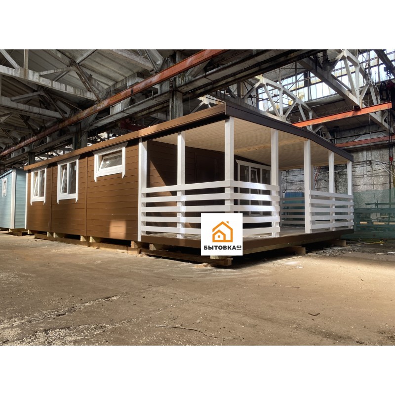 Модульный дом с крыльцом. Небольшой модульный дом для сезонного использования. Модульные дома (быстровозводимые) это дома которые собираются у нас на производстве, а на участке заказчика собираются из уже готовых модулей. Модульные дома отличное решение для того кто не хочет устраивать масштабную стройку на участке, так как на монтаж такого дома непосредственно на участке требуется всего 1 день.
